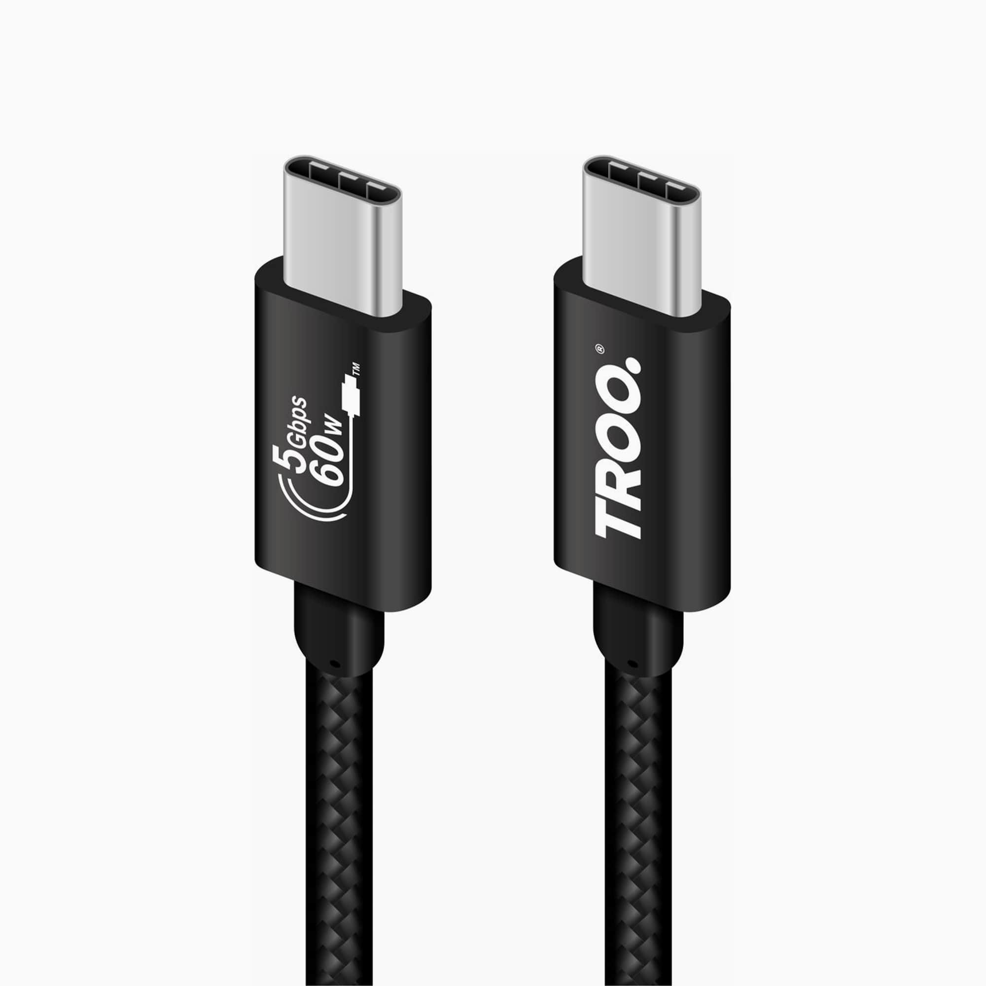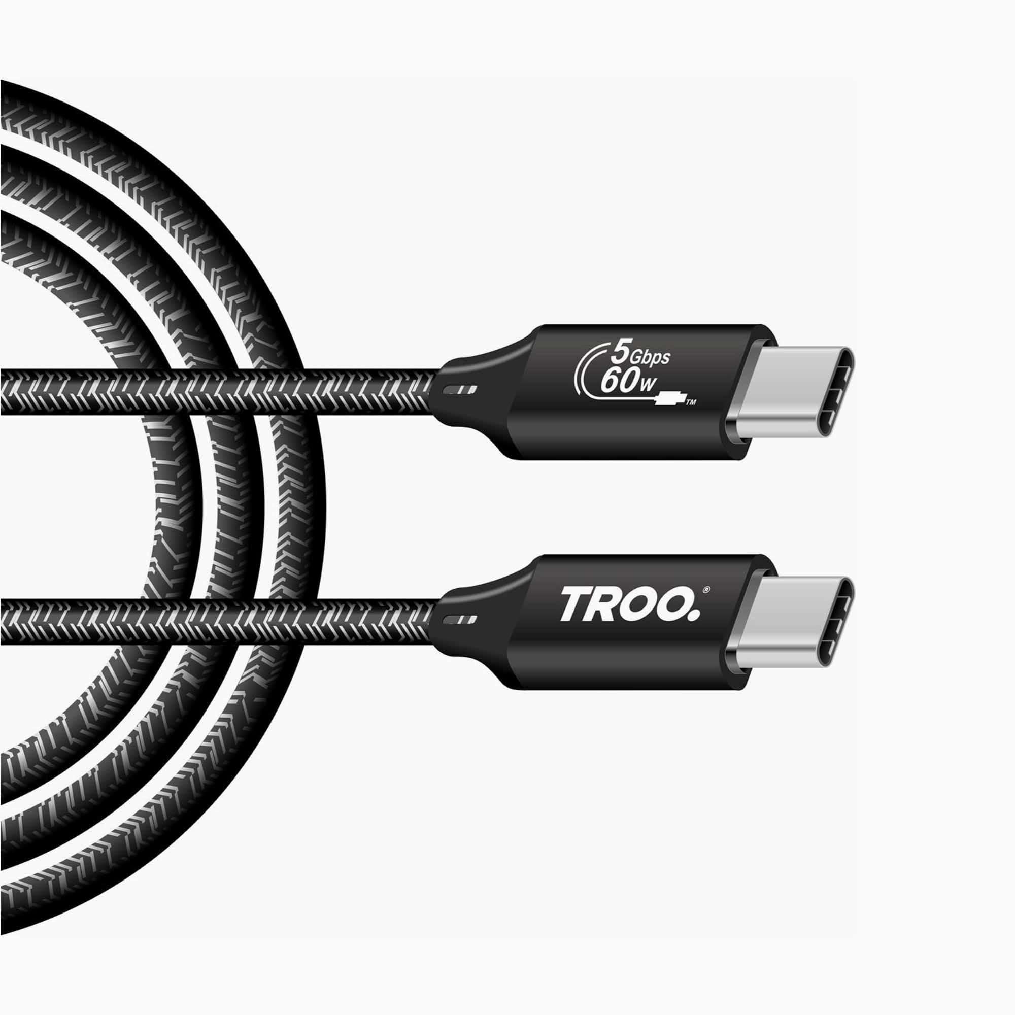 TROO Certified Fast Charge PD 60W Type-C Braided Cable - Android Auto Ready
