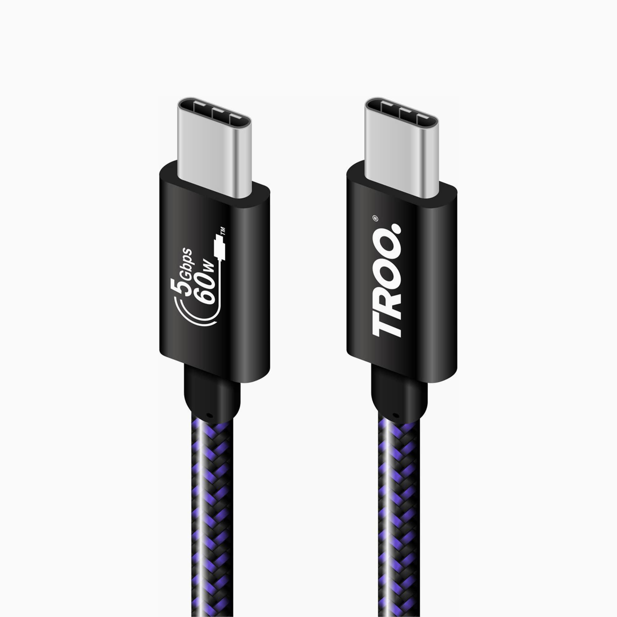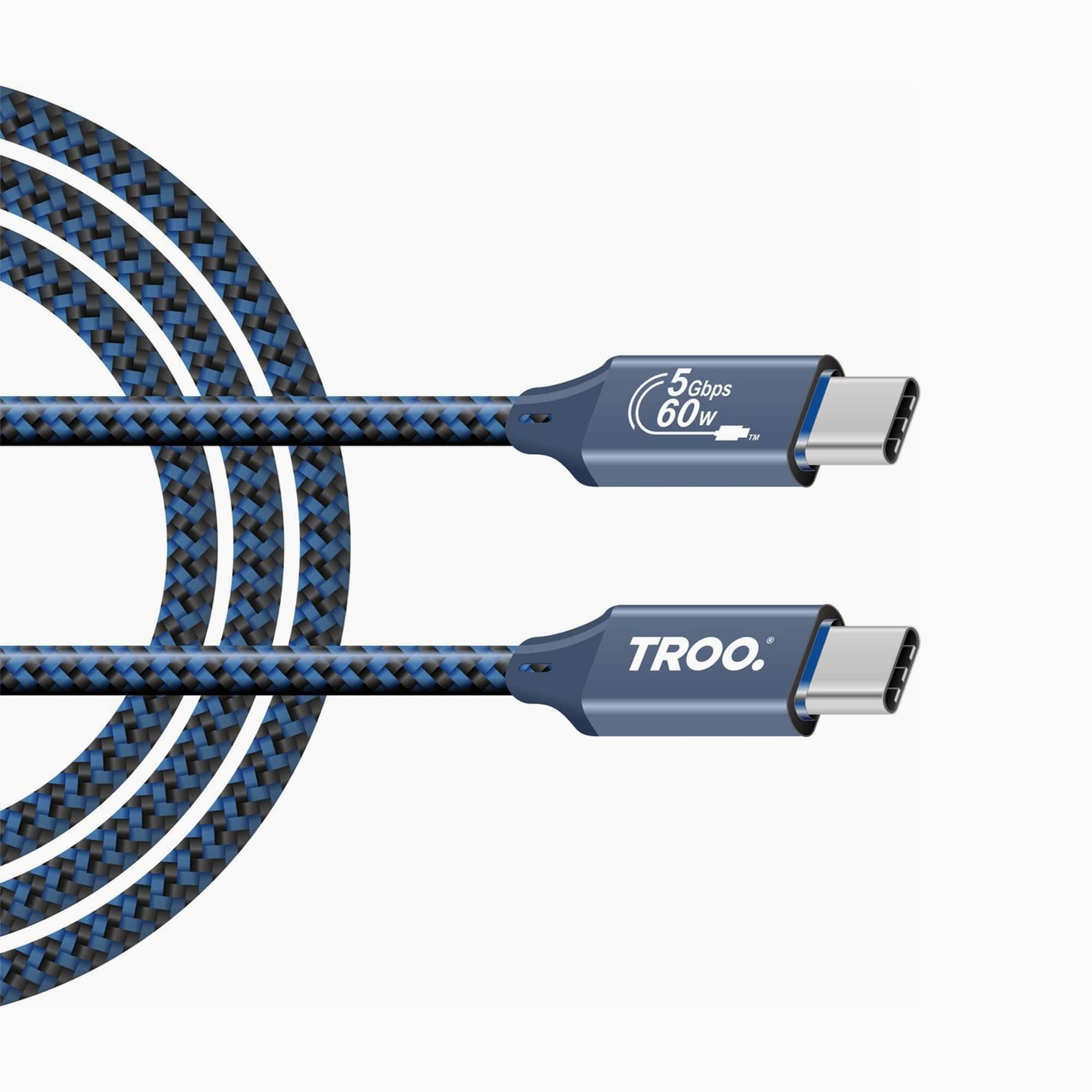 TROO Certified Fast Charging 60W USB-Type-C Braided Cable - Android-Auto Ready