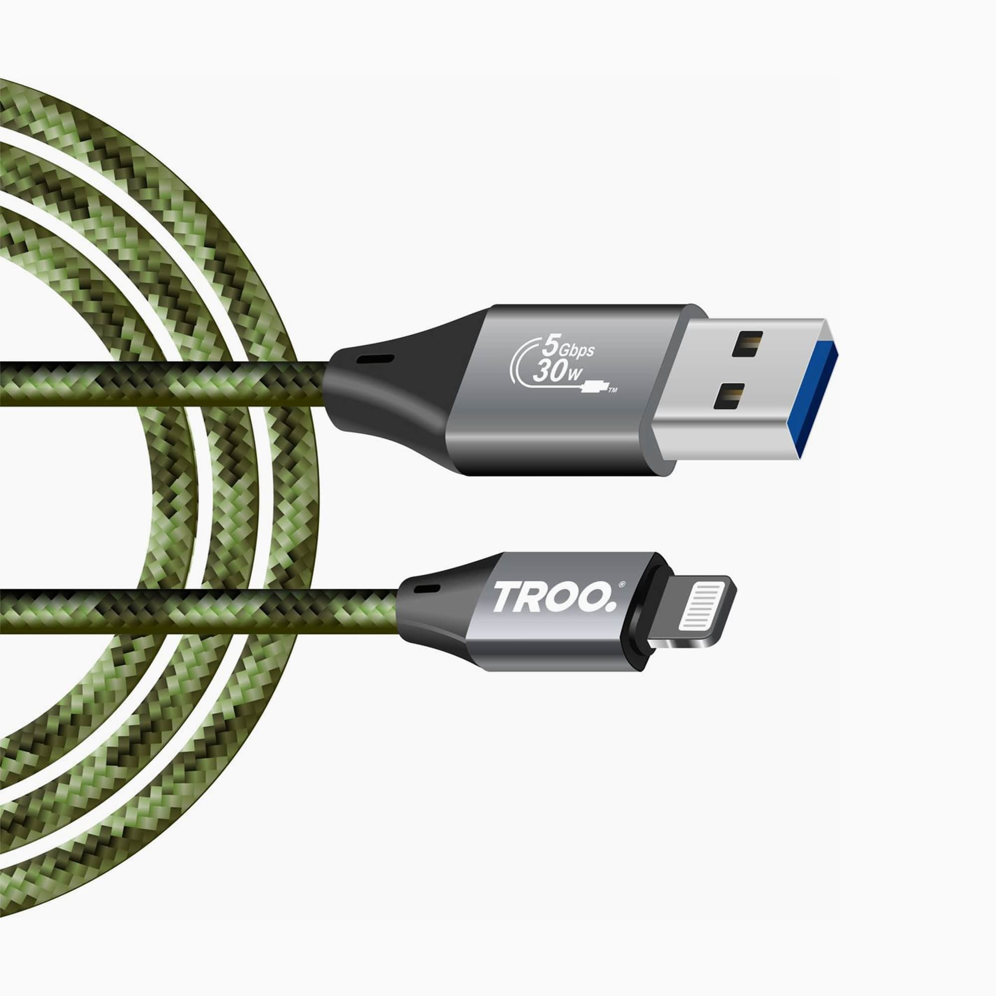 The TROO.® Certified Apple MFI Fast Charge USB to Lightning Braided Cable combines fast, safe charging with durability. MFI-certified, it’s perfect for all Apple devices, featuring 30W power, high-speed data transfer, and a tough braided design.